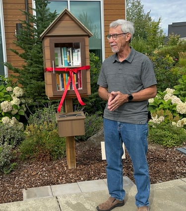 Your passion and belief in the power of books to not simply entertain or inform, but to change lives, is what led me to build and support, in your memory, a “Grief Support Lending Library” for Hospice of North Idaho (HONI). This library contains books on grief, healing and hope; available for anyone to borrow that is grieving and mourning the loss of a loved one or companioning someone who is. This morning (Monday), this new addition to their campus was dedicated and opened to the community in your honor and memory. Your legacy and passion for helping others live on my love. Thank you so very much! Thanks also to HONI leadership for the opportunity and privilege of honoring and remembering you in this very special way.